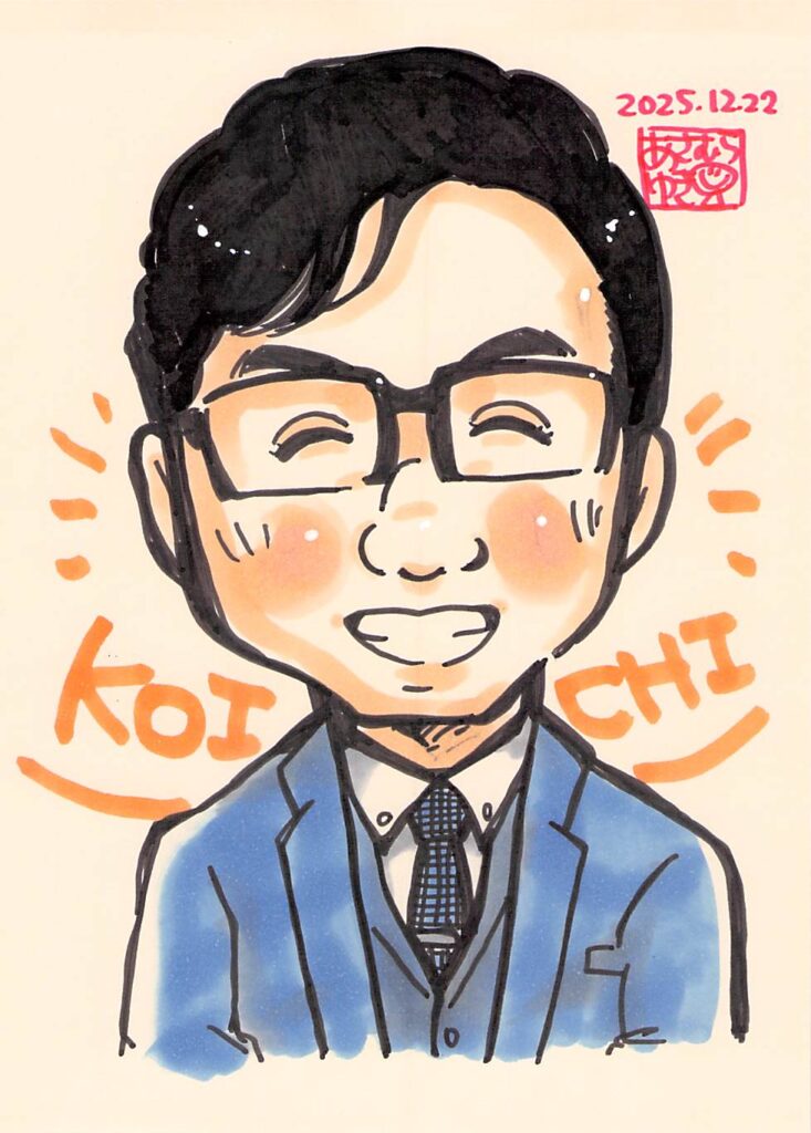 似顔絵を描いてもらいました 2025.12.27ブログ一覧 HOME ブログ ブログ一覧 似顔絵を描いてもらいました Share 似顔絵を描いてもらいました 先日、いつもランチやお茶でお世話になっている、fruit cafe Saita! Saita! さん(http://saitasaita.com/)のイベントで、あさむらゆきさんに似顔絵を描いてもらいました。数年前にお願いしてもらって以来で、今回もとても男前(!)に描いてもらいました。 10分ほどでささっと描かれて、すごかった・・・! Share 投稿者: 浩一嶋田 ブログ一覧 コメント: 0 事務所移転のお知らせ コメント ( 0 ) トラックバックは利用できません。 この記事へのコメントはありません。 関連記事一覧 クールビズだけど 2022.06.02ブログ一覧 開業6周年 2022.10.03ブログ一覧 自然のめぐみ 2022.04.27ブログ一覧 厄除祈願 2022.01.20ブログ一覧